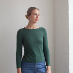 Suitable fabrics: The Boatneck Top is a fitted jersey pattern which means it needs to be paired with a stretchy fabric. You can use a jersey with an elastane blend or a fabric knitted with plenty of stretch. For a wearable wardrobe basic we recommend using a lovely lightweight jersey in a fibre of your choice.