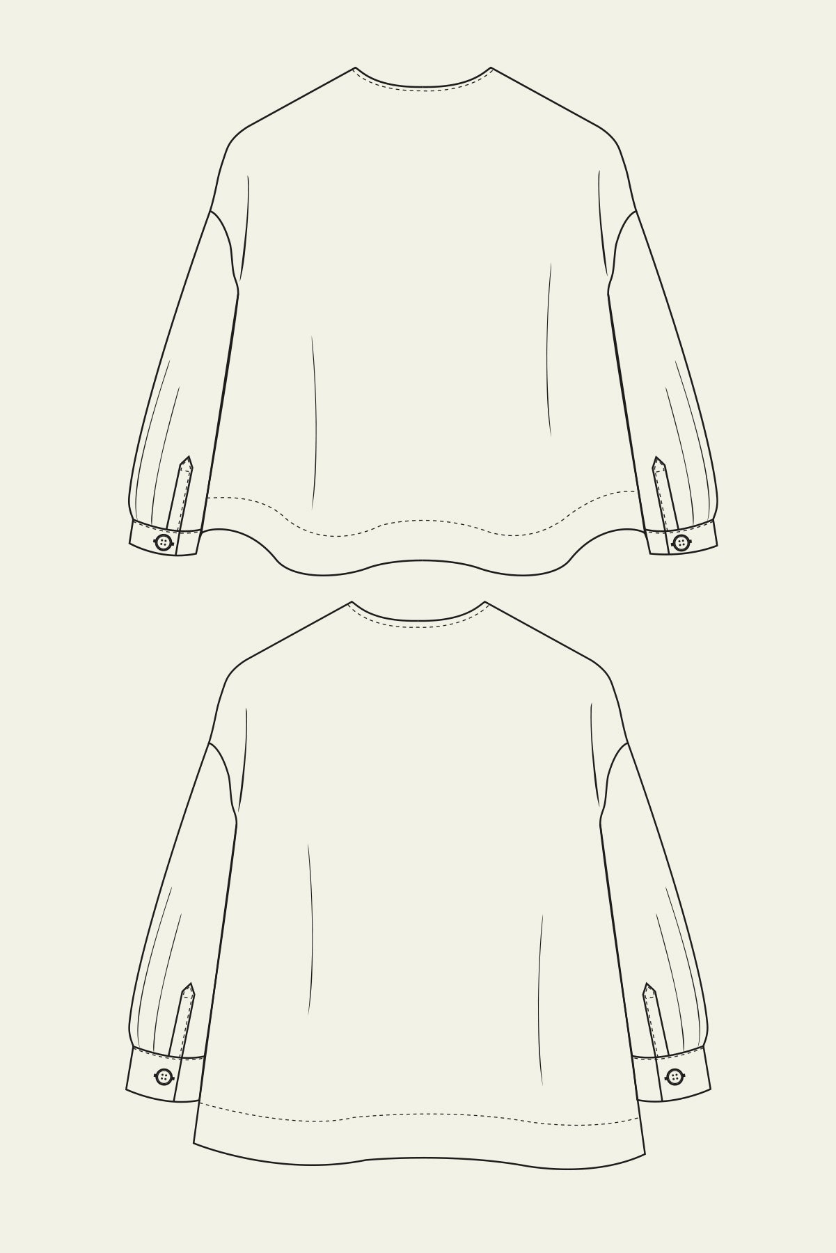 Suitable fabrics: Linen, poplin, lawn, lightweight denim and twill for a 'blouse' version. For a heavier 'outdoor layer' version you can use corduroy, denim, wool suit or a lightweight wool felt.