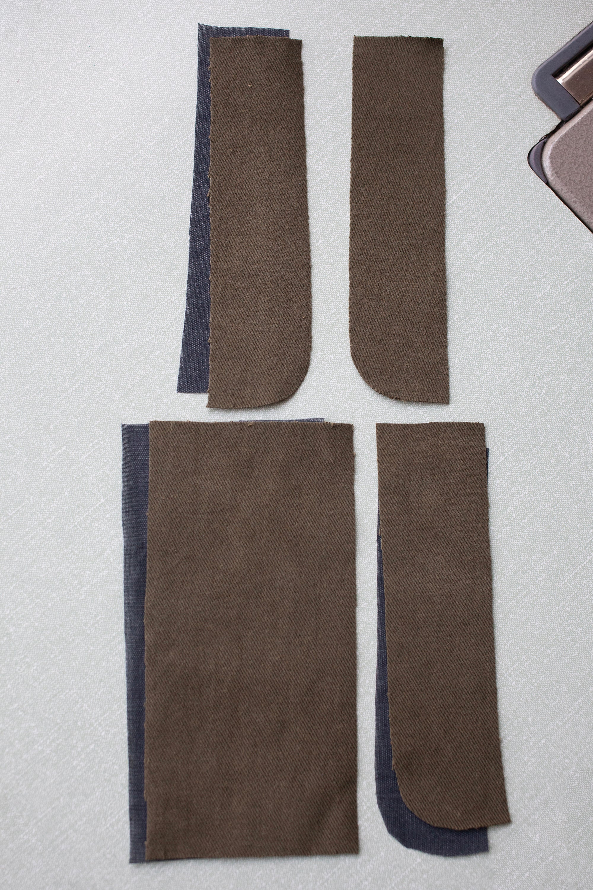 Begin by fusing the Fly Stand, Fly Facing and Button Hole Stand. Make sure that the Button Hole Stand is cut and fused as shown in this photo (with the curve on the right when looking at the fused side of the piece).