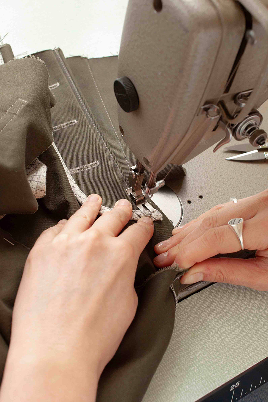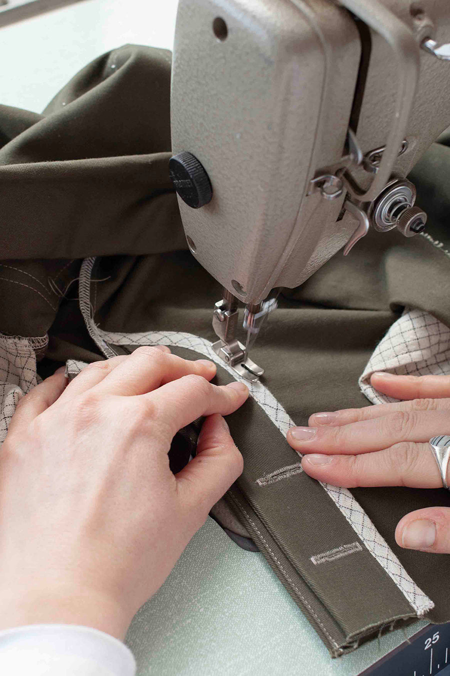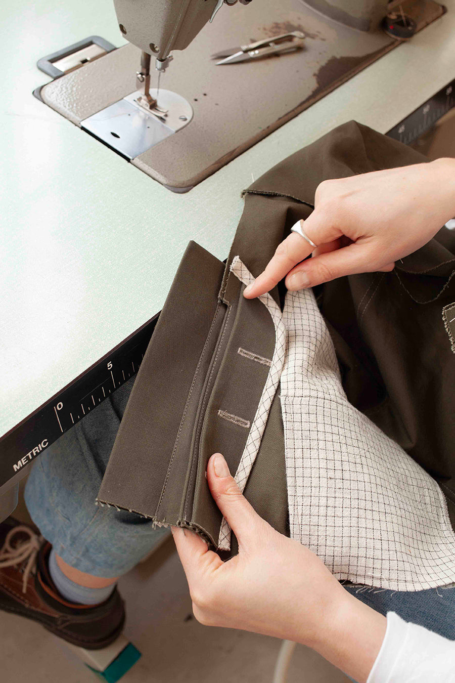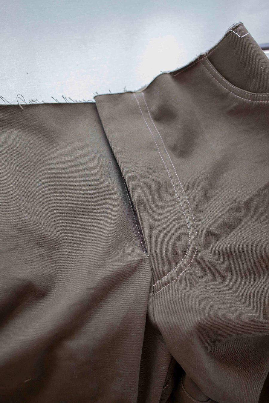Lastly, from the top of the trouser add a discreet bar tack to secure the fly guard to the trouser. This will ensure this guard doesn’t flap open and stays in place. Trim all the loose threads and give the area a good press.