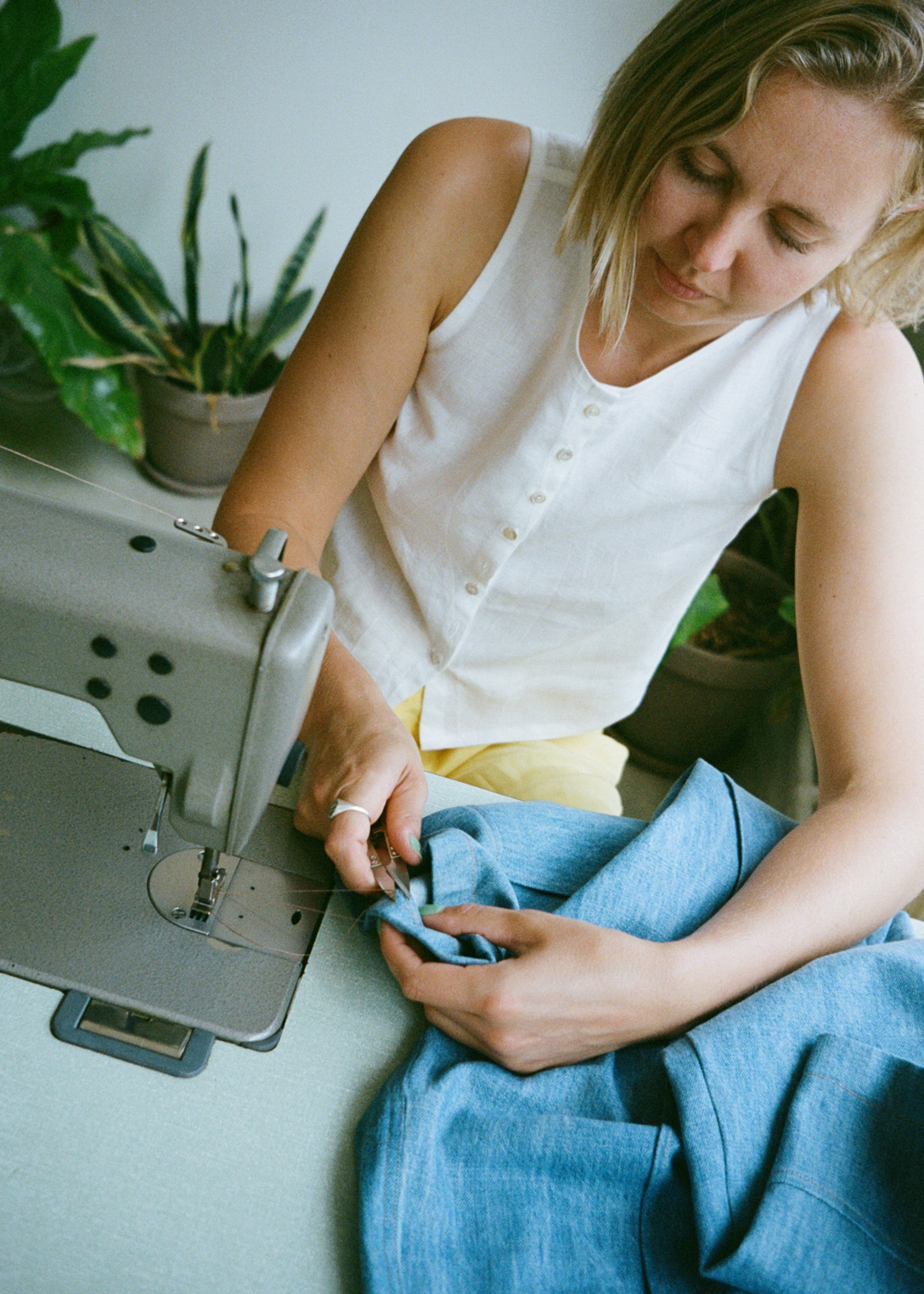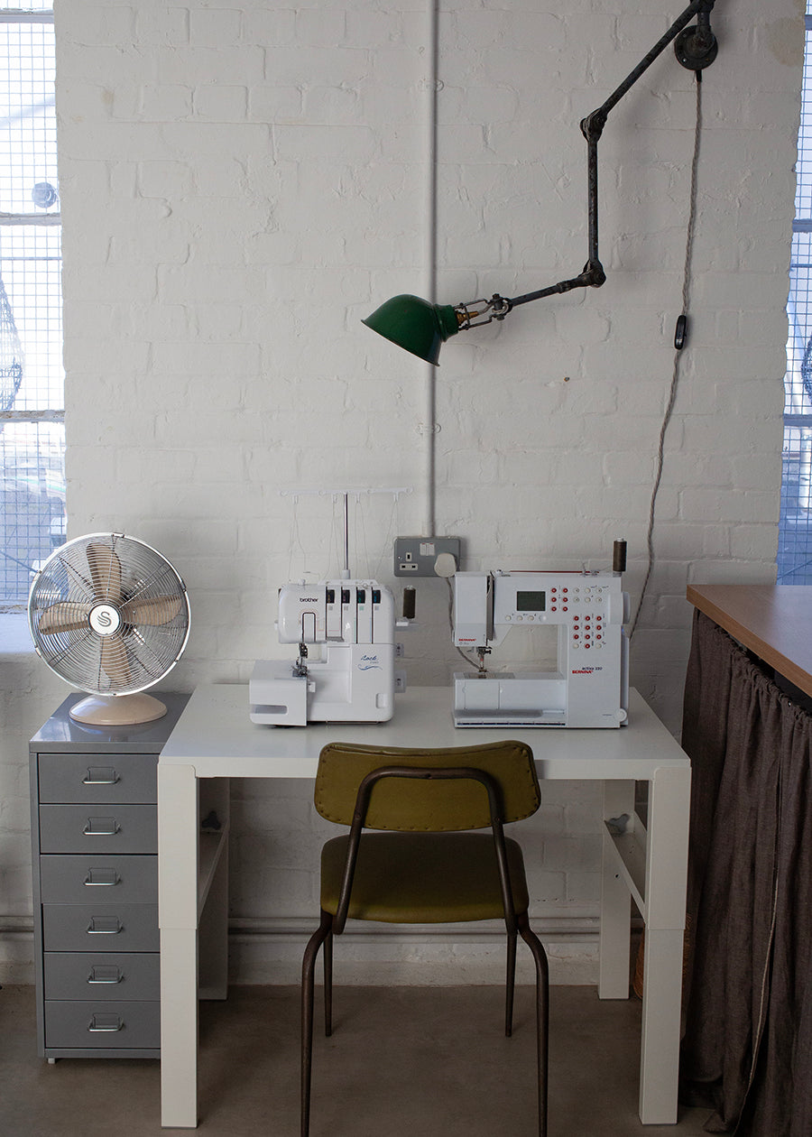 Hetty uses an industrial brother sewing machine in the studio but all the patterns have been designed for home sewing. All of our workshops have been filmed using a domestic machine.