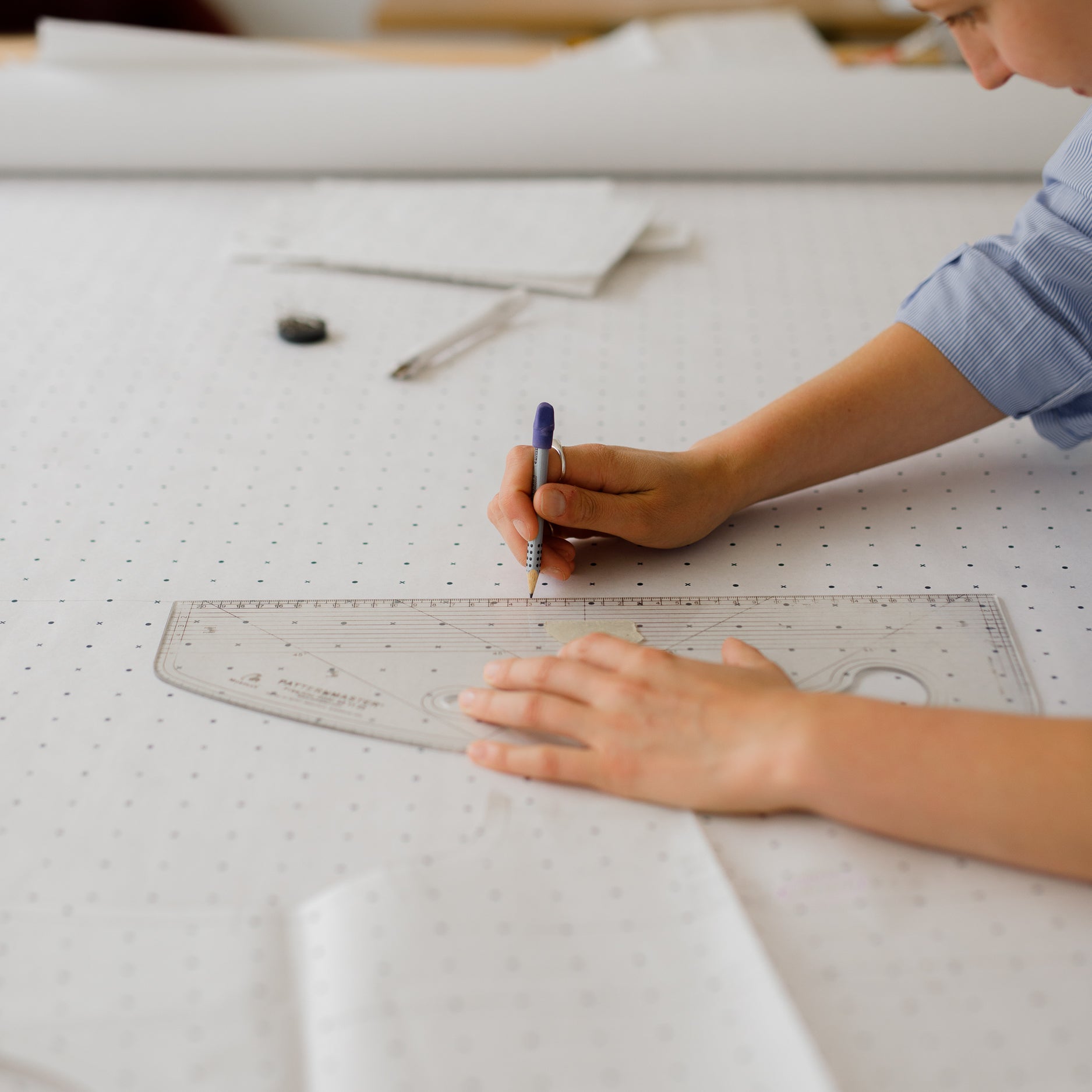 Once we’ve toiled and re-toiled (that's the prototypes in layman's terms) we’re ready to sample. I absolutely love the sampling stage which sees the garment come to life. We sample with high quality fabrics and test wear the first few samples before we sign off the pattern. The pattern will then get digitally graded.