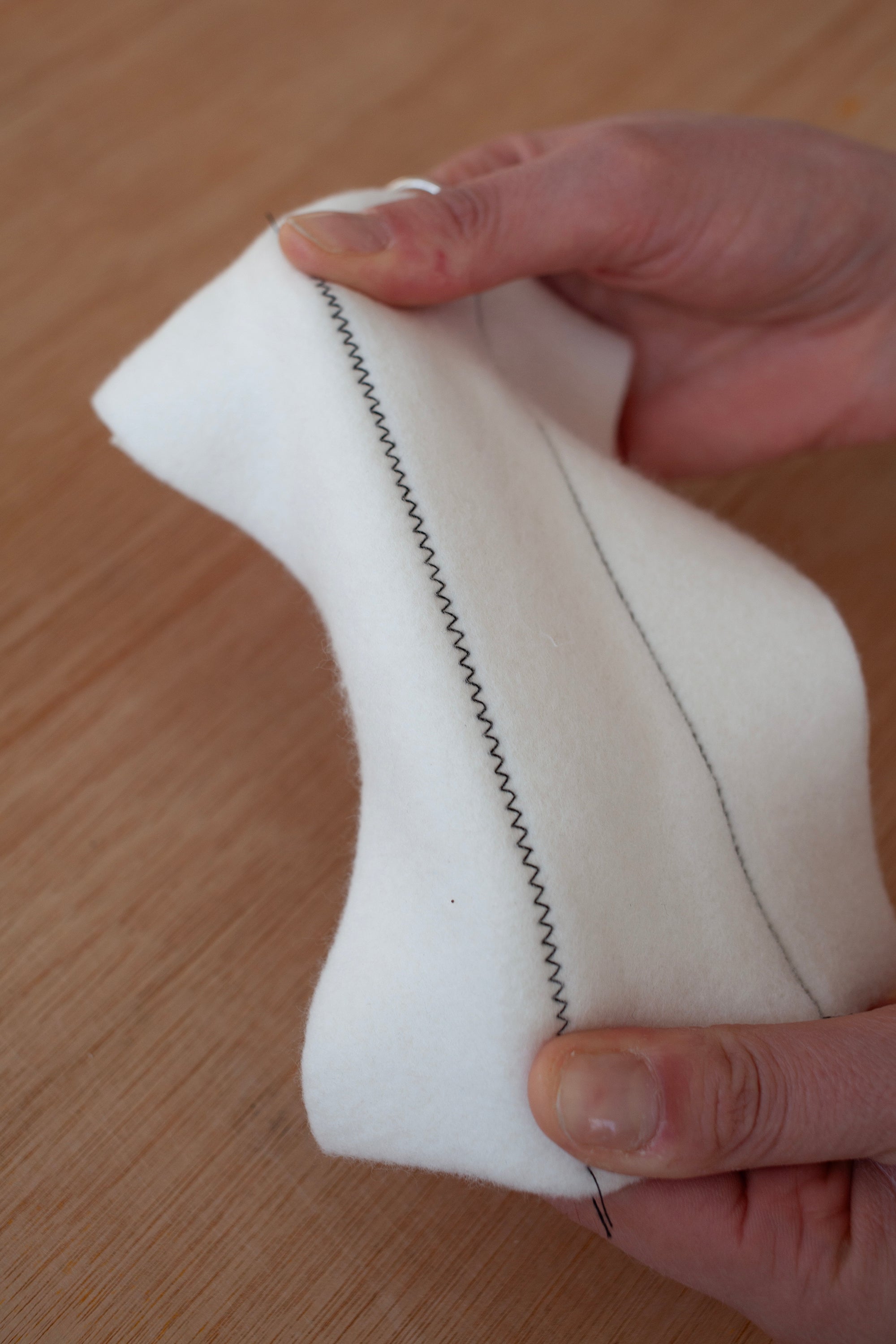 Always pull apart your seam to test the strength. This is a good example of the stitch at a good tightness. Normally you would use a matching thread and the stitch wouldn’t be quite as visible here.