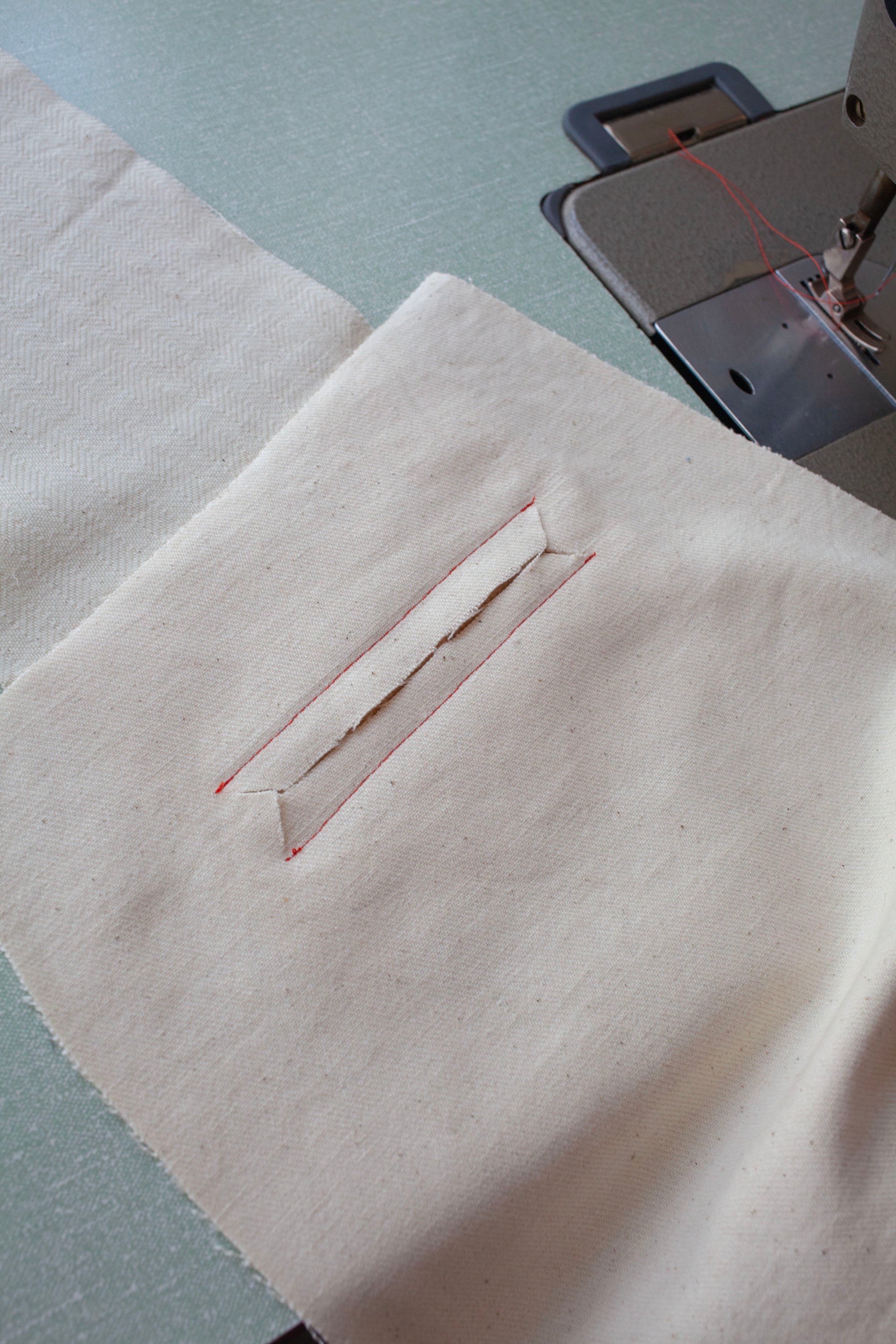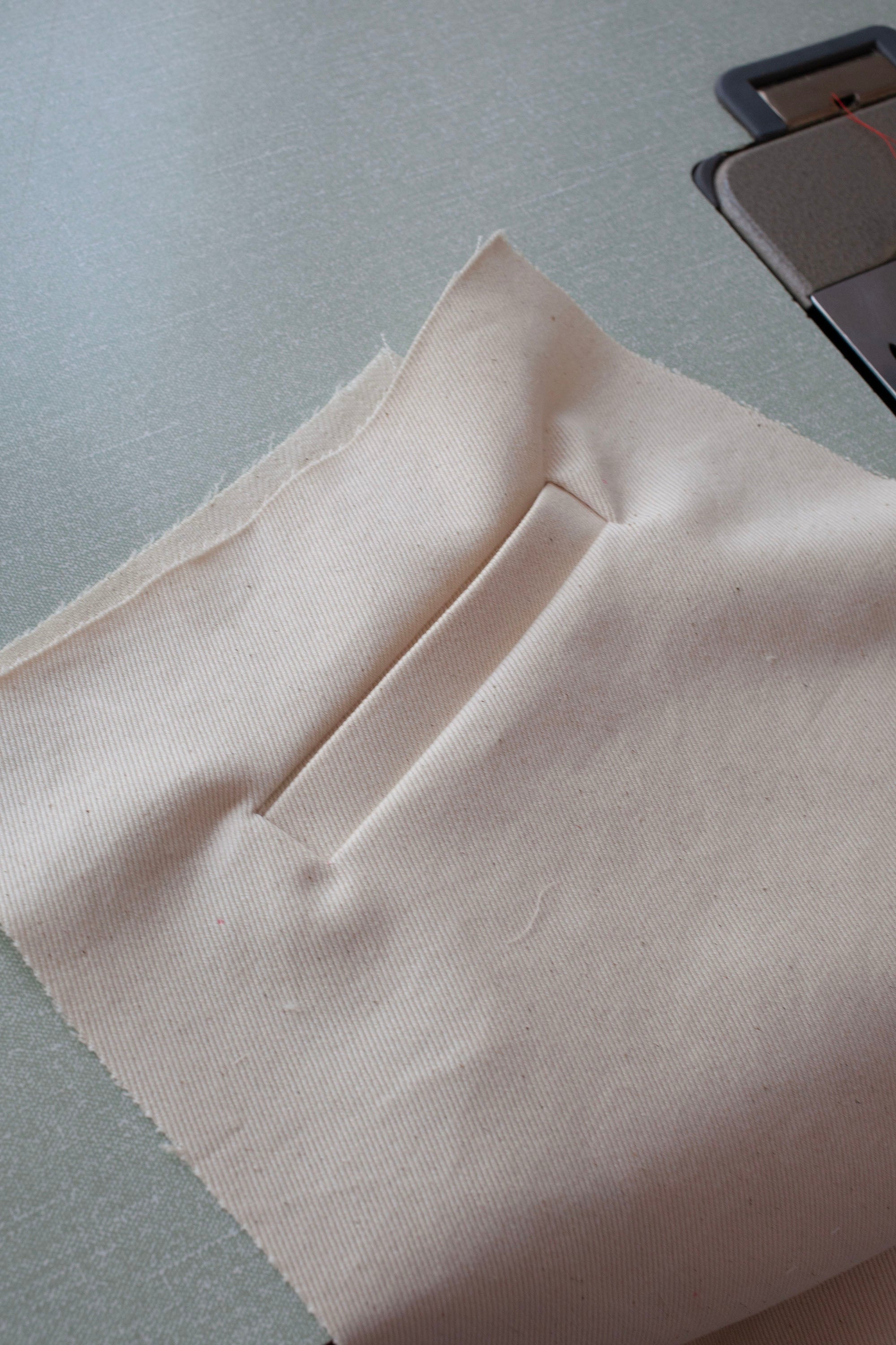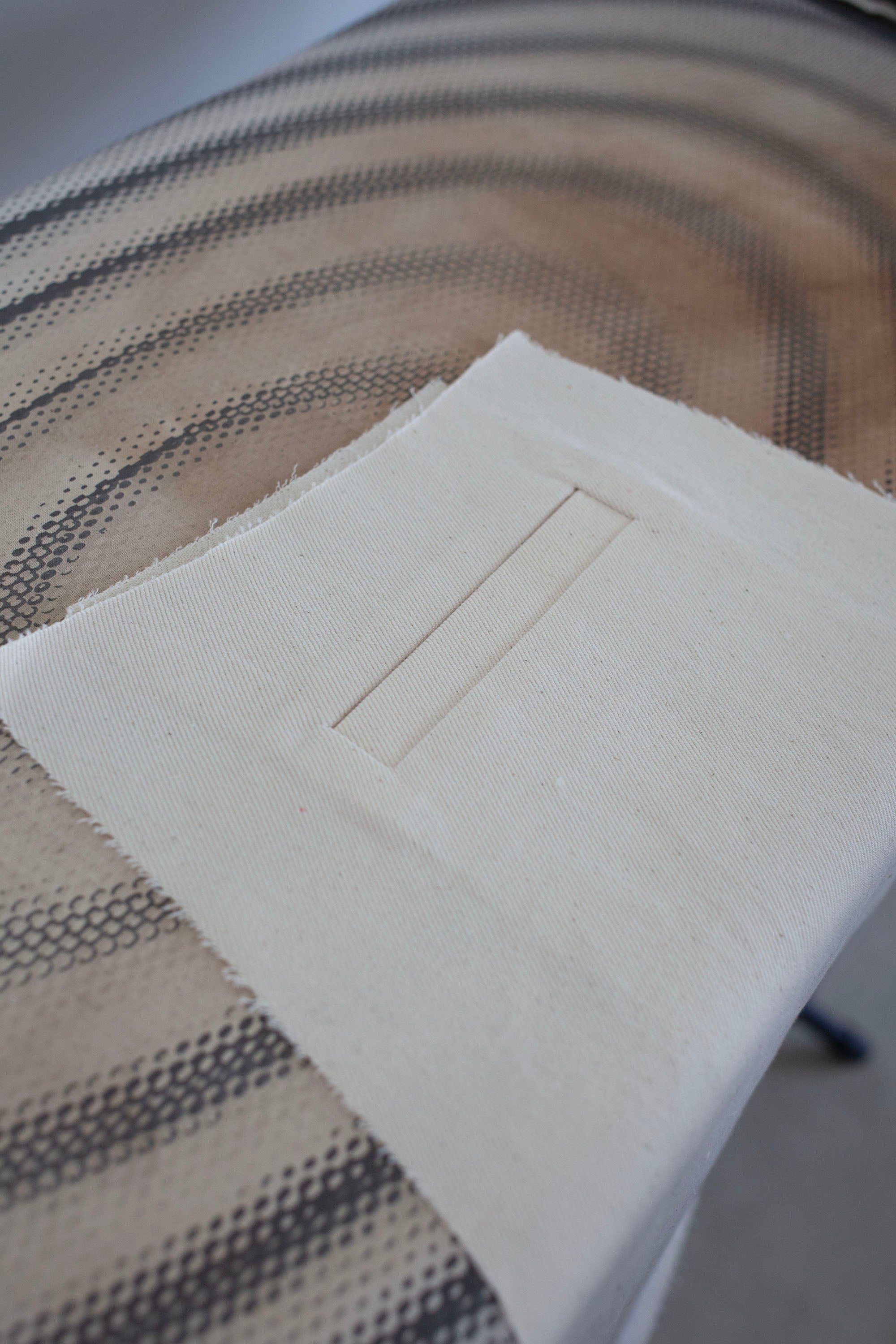 Take your time to make sure the layers are sitting nice and flat, resembling a welt pocket shape.