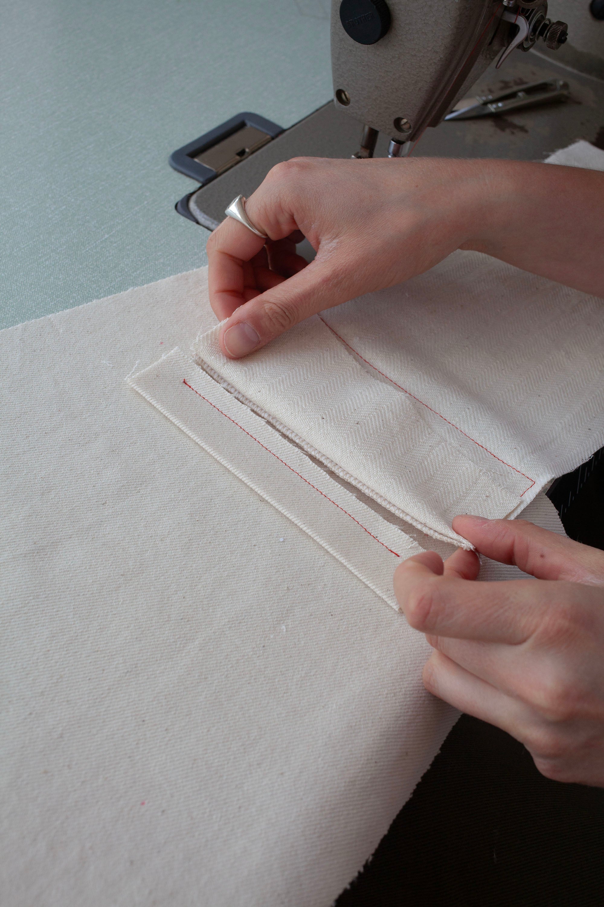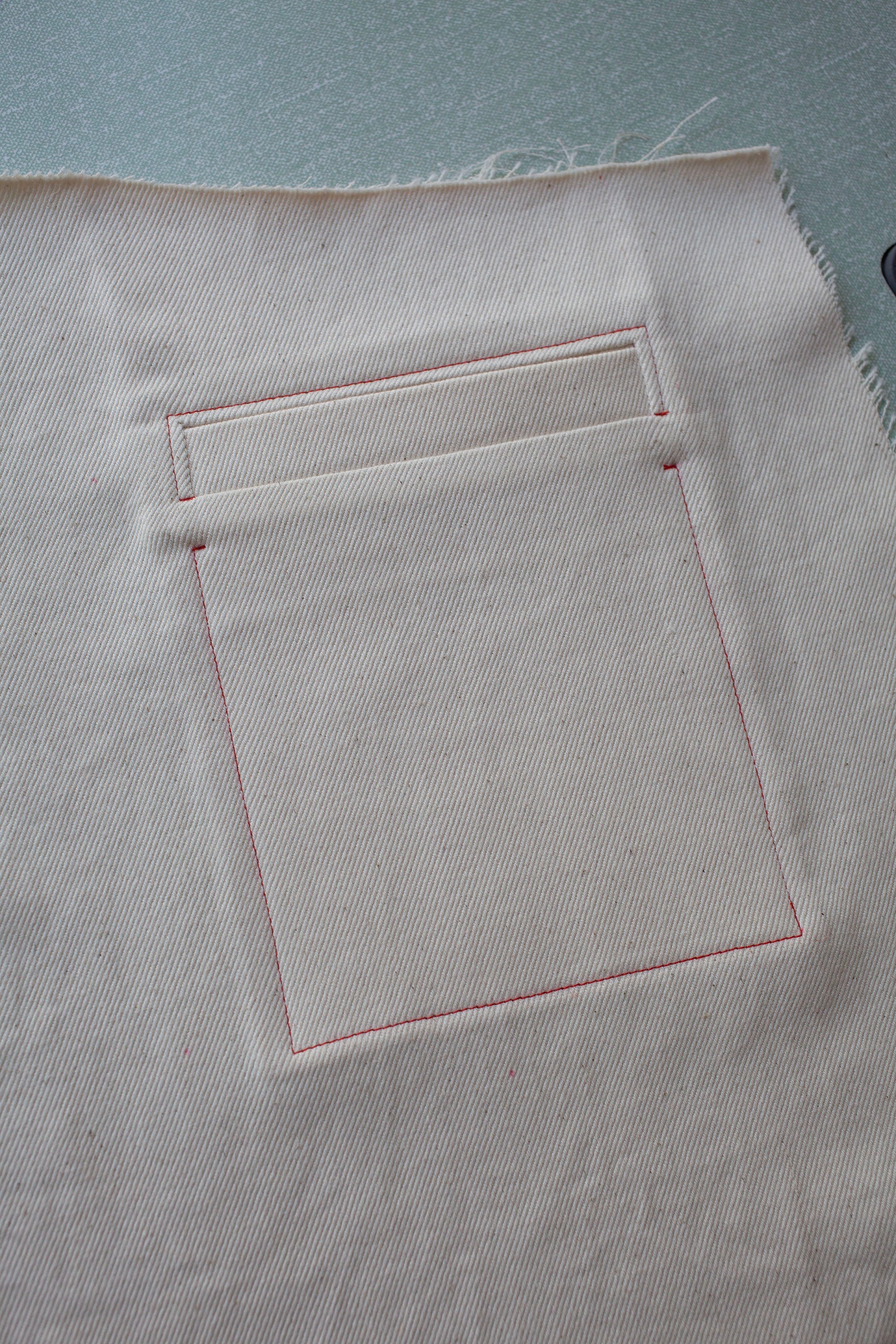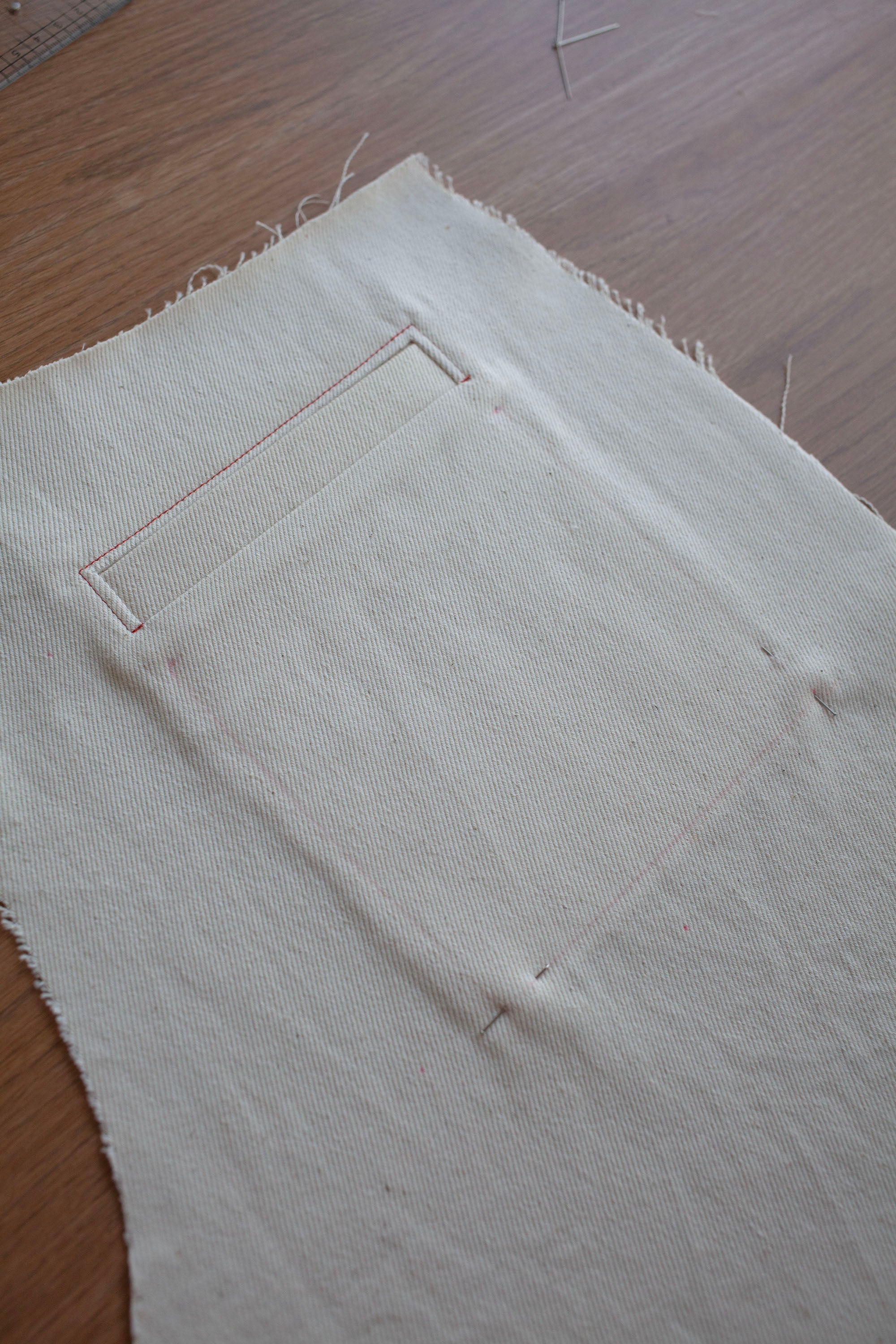 Take your time to make sure the layers are sitting nice and flat, resembling a welt pocket shape.