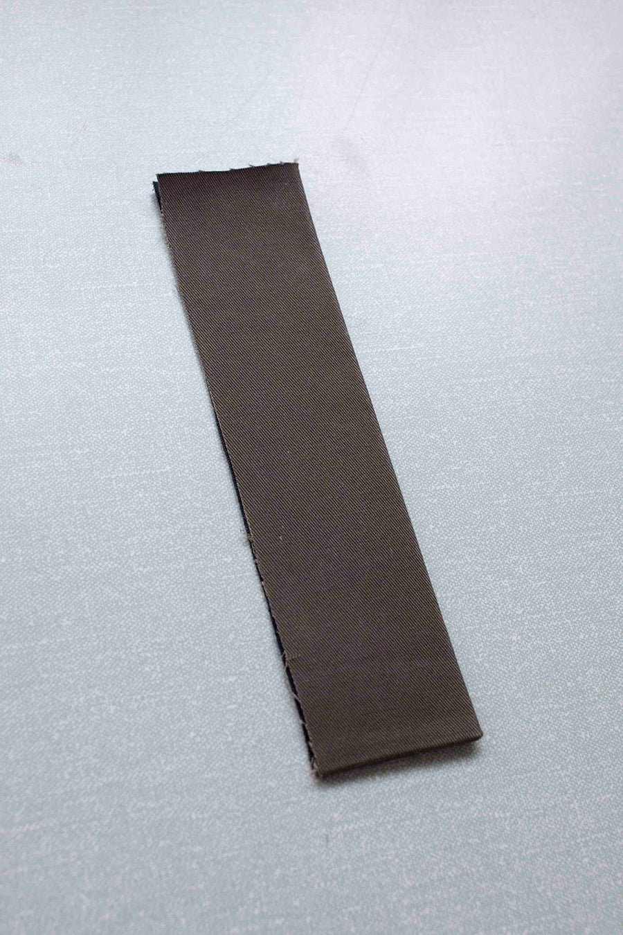First you’ll need your fused Fly Stand. Press this piece in half lengthways and bag out the bottom of the square with a 1cm stitch. To do this, fold it in half RIGHT SIDES TOGETHER and stitch a 1cm line all the way across the bottom.