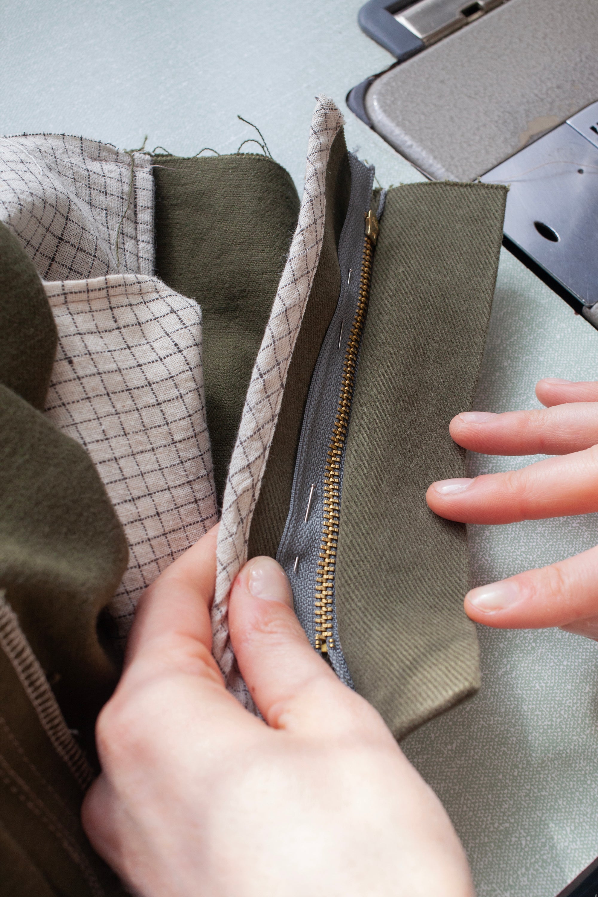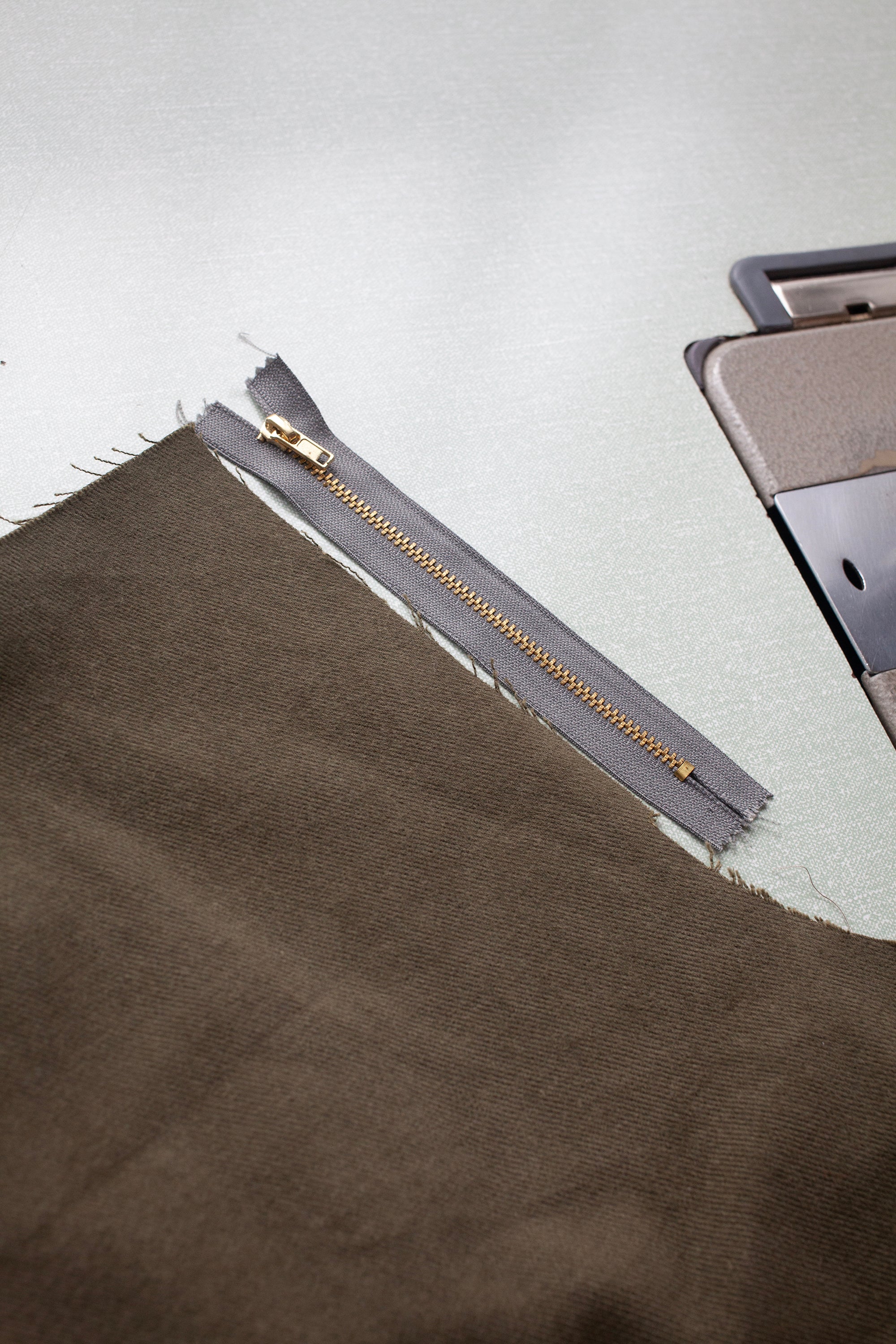 Flip this little free step out to lay flat then add a 1mm edge stitch down the side of the zip, stopping just before the step.