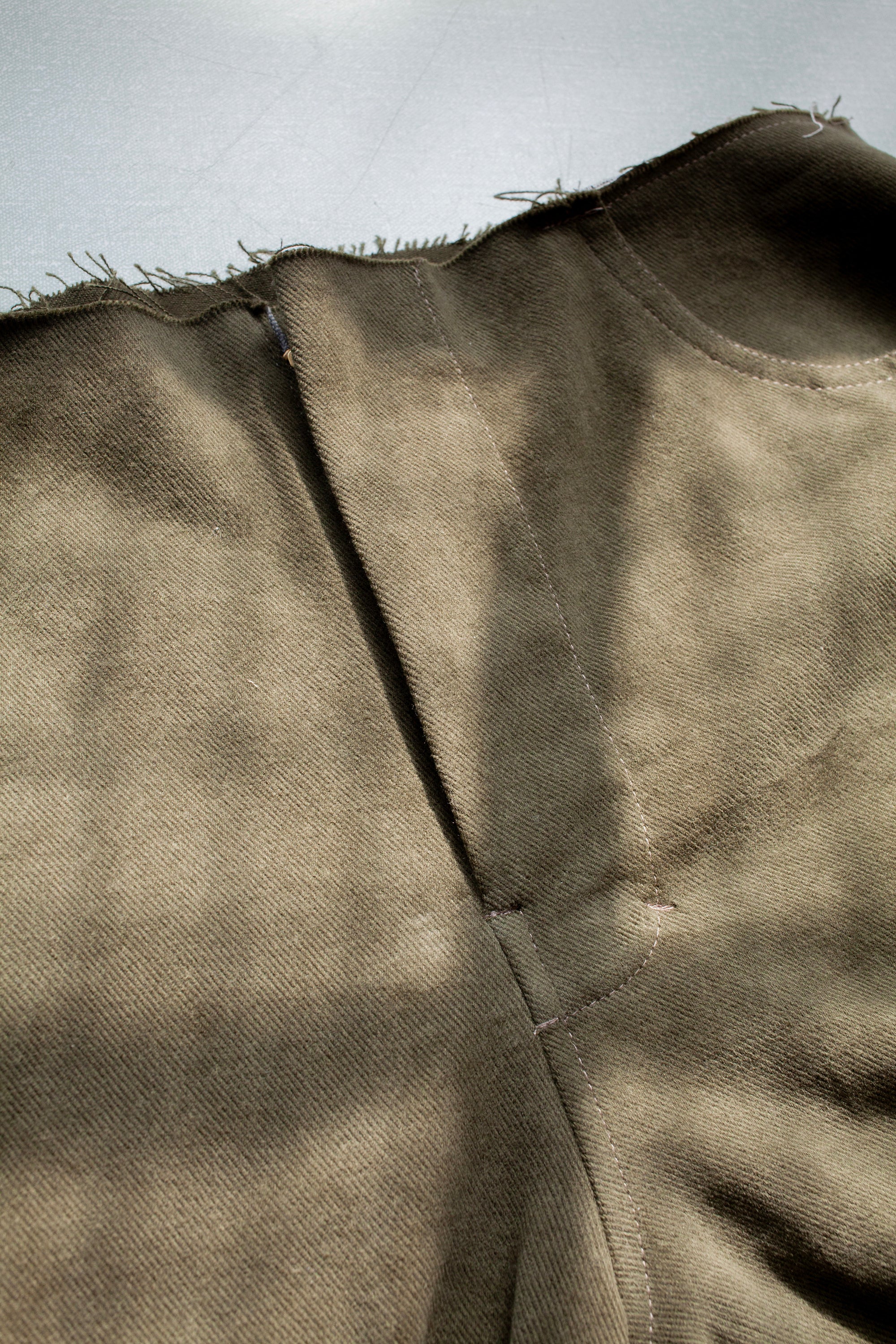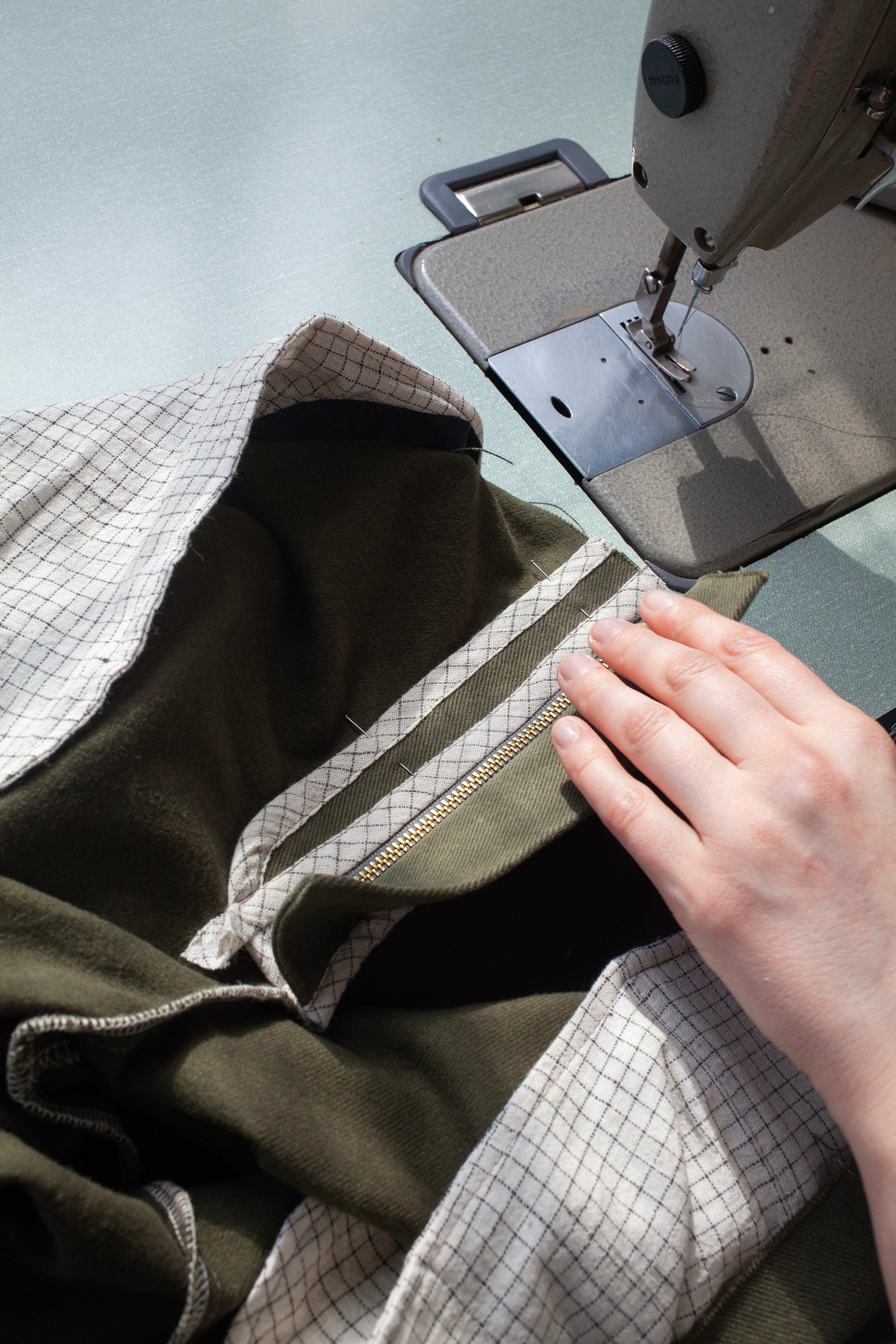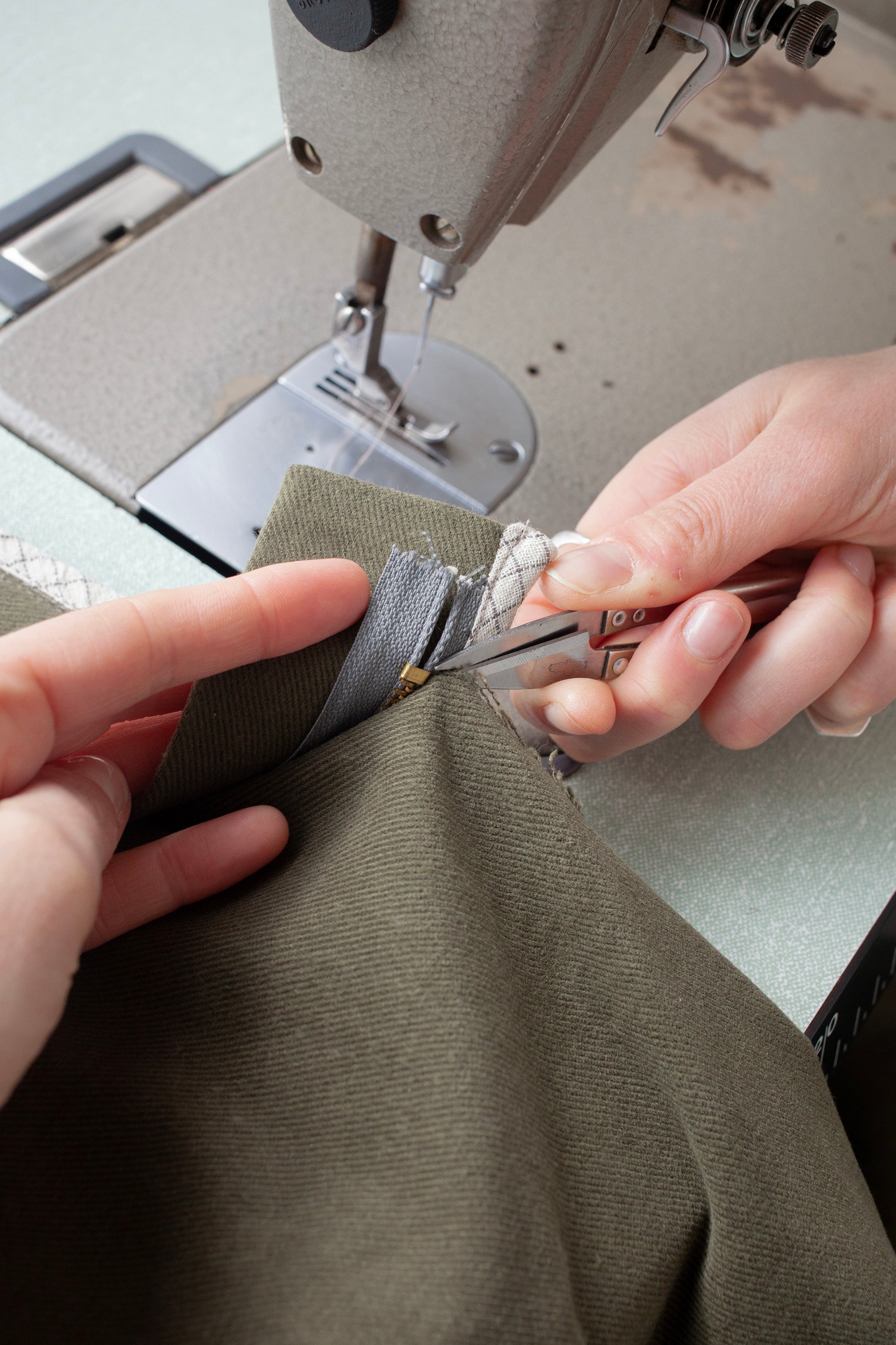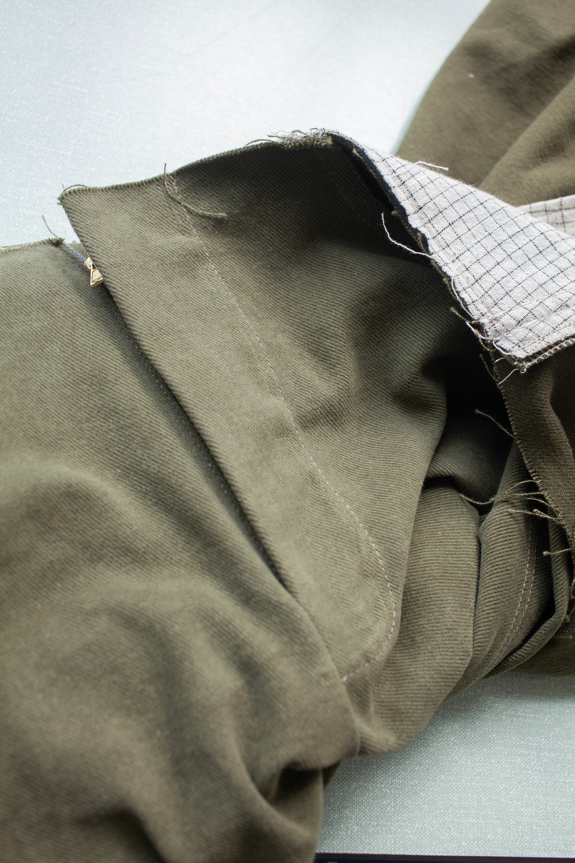 Lastly, from the top of the trouser add a discreet bar tack to secure the zip guard to the trouser. This will ensure this guard doesn’t flap open and stays in place. Trim all the loose threads and give the area a good press.