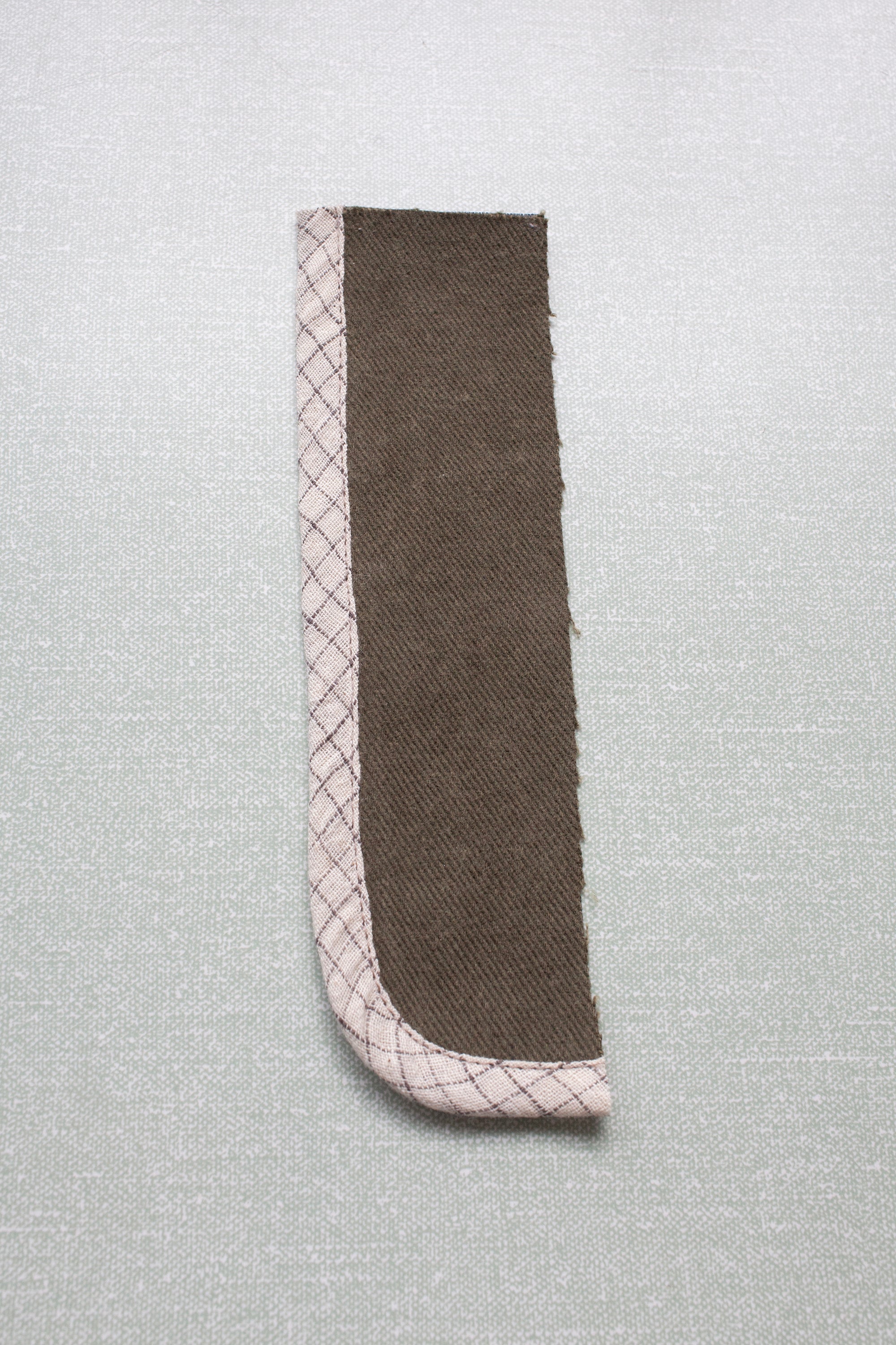 Begin by fusing the Fly Stand and Fly Facing pieces. Make sure that the Fly Facing is cut and fused right side up.