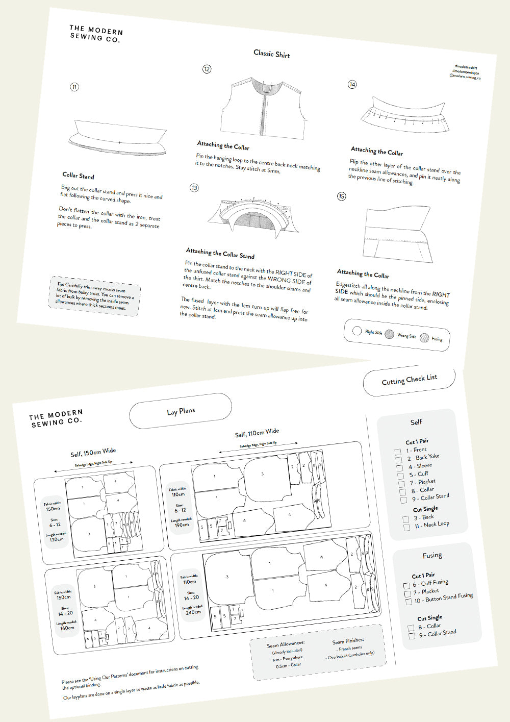 Suitable fabrics: The Classic Shirt works best in a lightweight, breathable fabrics that have a bit of flexibility. You can choose fabrics suitable for warm or cold weather but it’s a good idea to choose something that will be soft next to the skin. Fabrics such as cotton poplin/lawn, linen, very lightweight denim, needlecord, lightweight twill and flannel are all suitable.