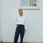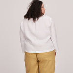 The Frida Shirt is fitted on the shoulders with a fairly boxy fit from the bust down. It's cropped to sit on the lower hip and features a simple sleeve that finishes at the wrist bone.