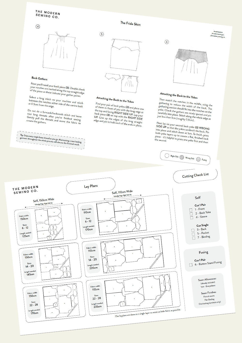 Suitable fabrics: The Frida Shirt works in a range of fabrics from lightweight and breathable to thicker and more cosy. Fabrics such as cotton poplin/lawn, linen, very lightweight denim, needlecord, light woollen weave, flannel and brushed cotton are all good options.