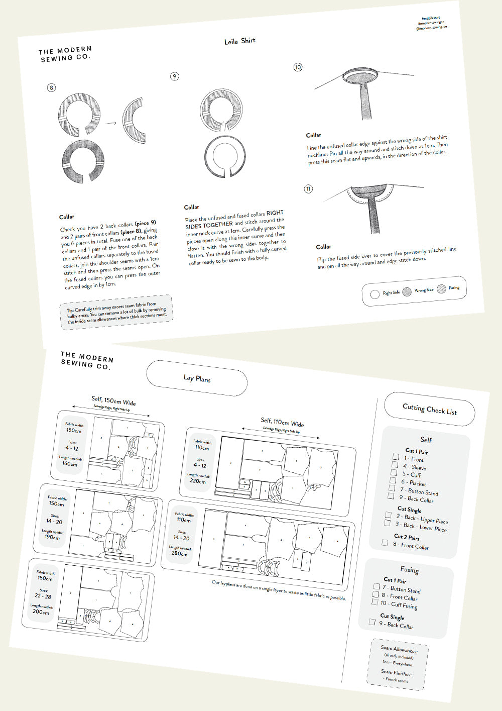 Construction techniques: French seams, placket & cuff, gathering details, facings, button stands, inserting a sleeve, hemming and buttons & button holes.