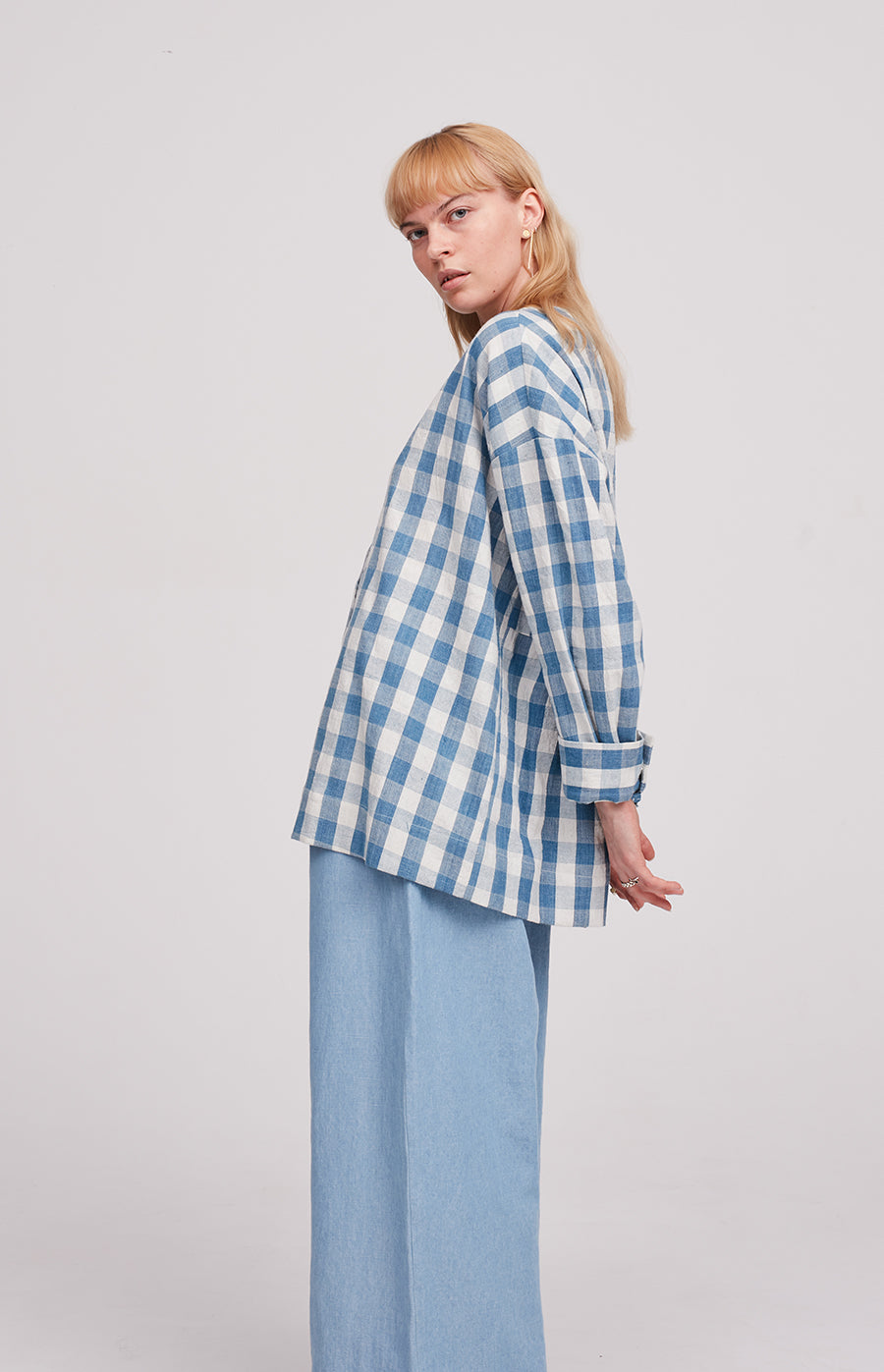 The Leila Shirt is an extremely roomy fit with an oversized square cut so it is a forgiving shape in terms of fit. If you’re inbetween sizes it’s recommended to size down instead of up.