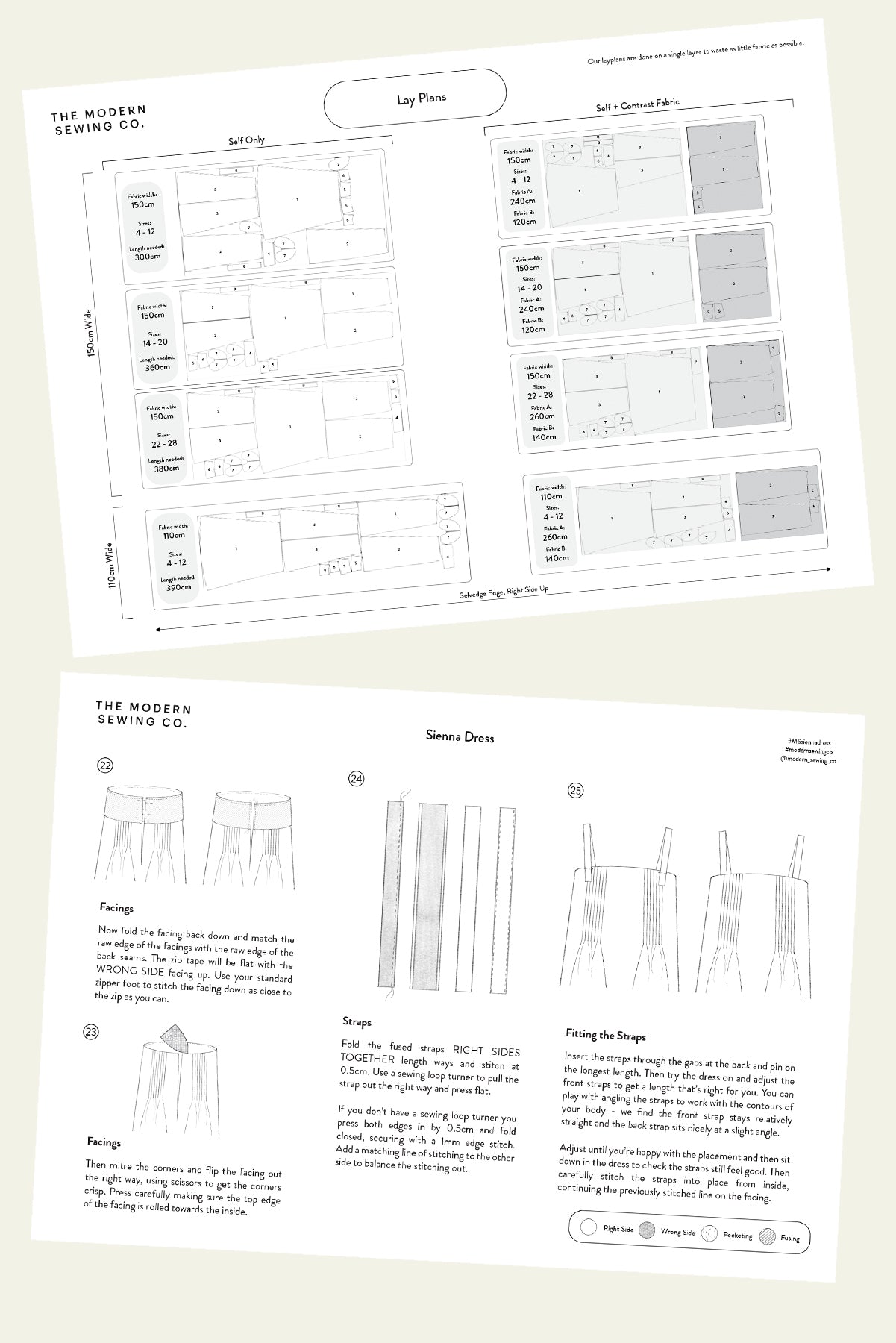 The two main areas to focus on with fitting Sienna Dress is the bust and the dress length. The dress should be loosely fitted around the upper bust and will flare out in an A-line shape from there. The instructions will guide you through how to choose your size by sewing a mini toile of the bust facing. The pattern also comes with 3 length versions with marked shorten lines.