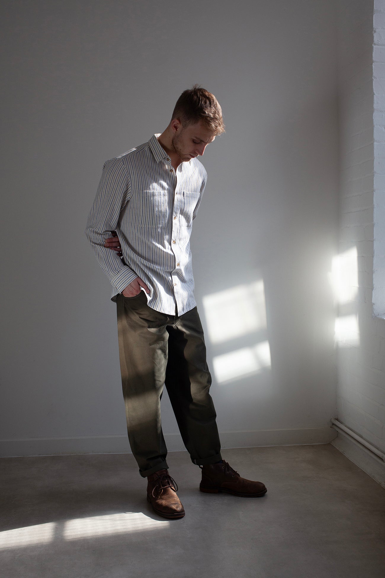 The Unisex Shirt is a classic men’s shirt that has been slightly modified to accommodate the curves of a female body. It sits broader on the shoulder than the Classic Shirt and generally has a leaner silhouette.