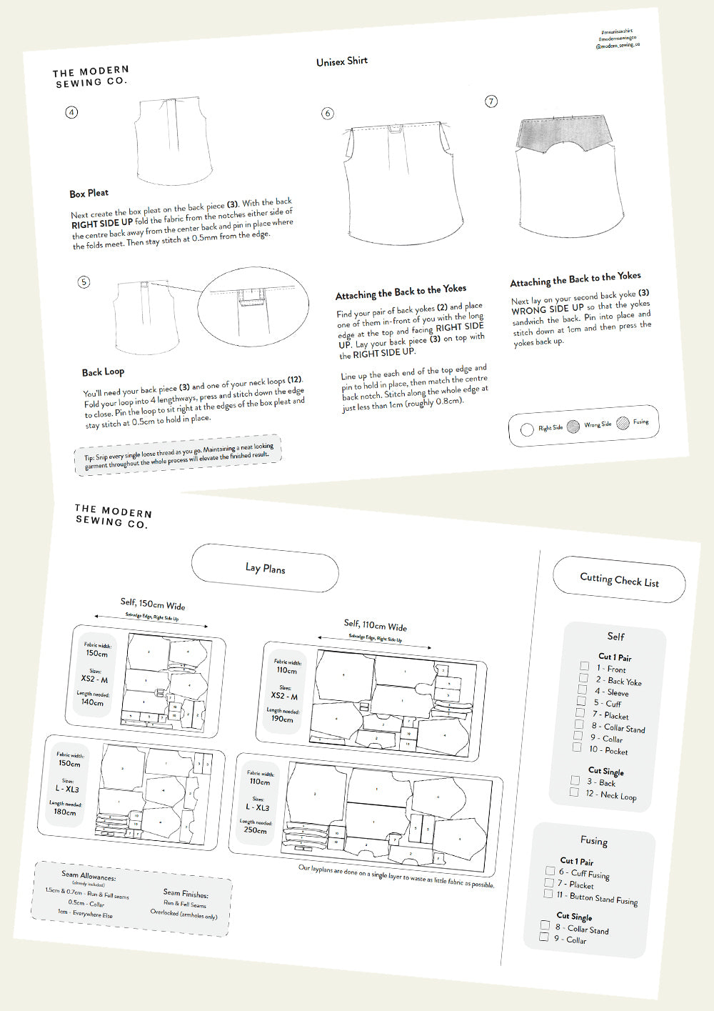 Construction techniques: Classic collar & collar stand, placket & cuffs, double shoulder yoke, run & fell seam, inserting sleeve head with ease, patch pockets & standard hem.